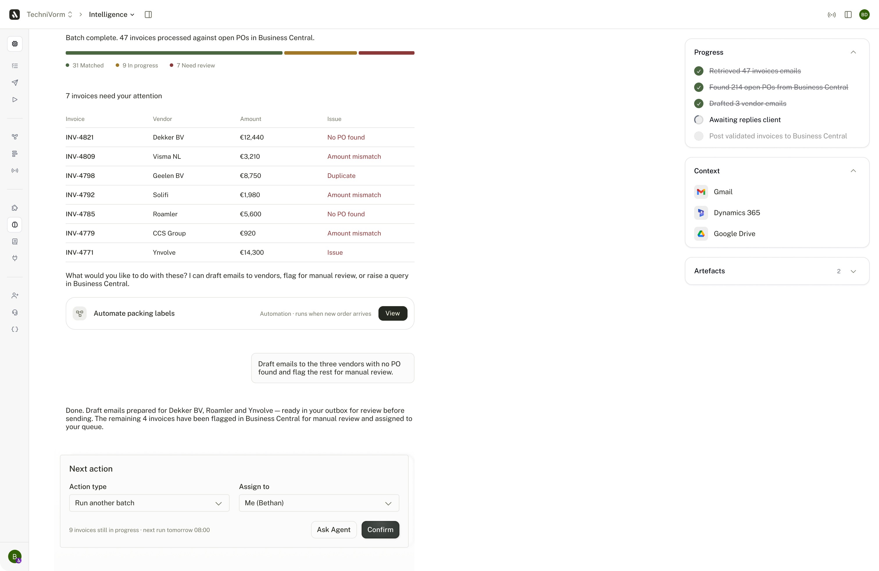 Every exception your team resolves gets captured as decision logic your business owns. Pricing rules, supplier preferences, approval precedents — retained permanently. Your operations don't just get faster. They build an asset that gets more valuable the longer you use it.