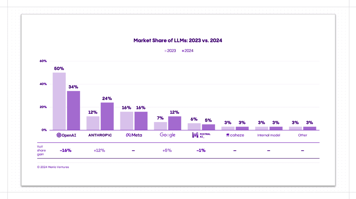 We see a clear shift in market share split across LLMs and expect this trend to continue into 2025, with an expected rise of LLMs originating in China, as well.