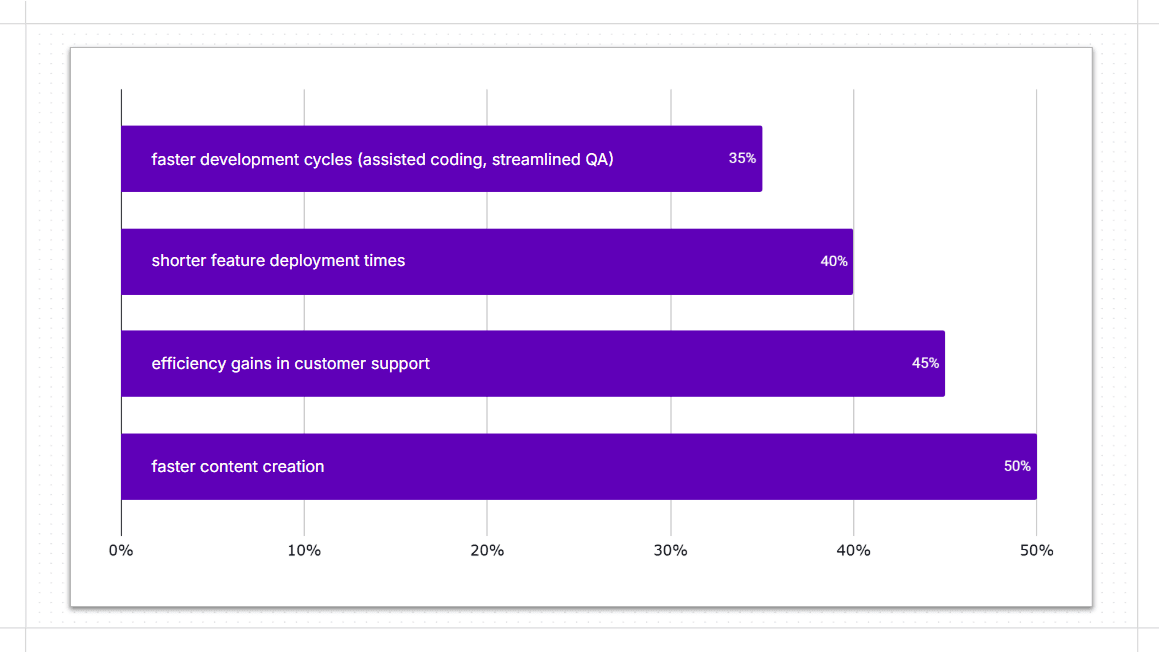 Content operations: Marketing and product teams are experiencing 50% acceleration in content creation, from documentation to marketing materials