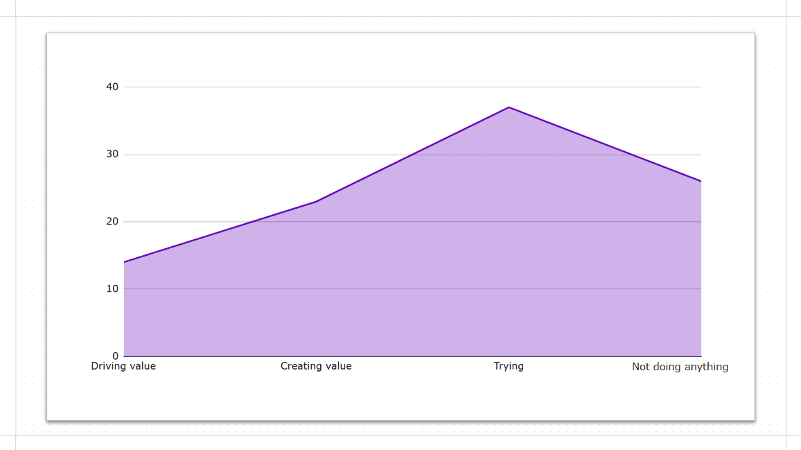 14% is actively driving value through AI with features in their product and/or with AI tools significantly improving the quality of their work or reducing time spend